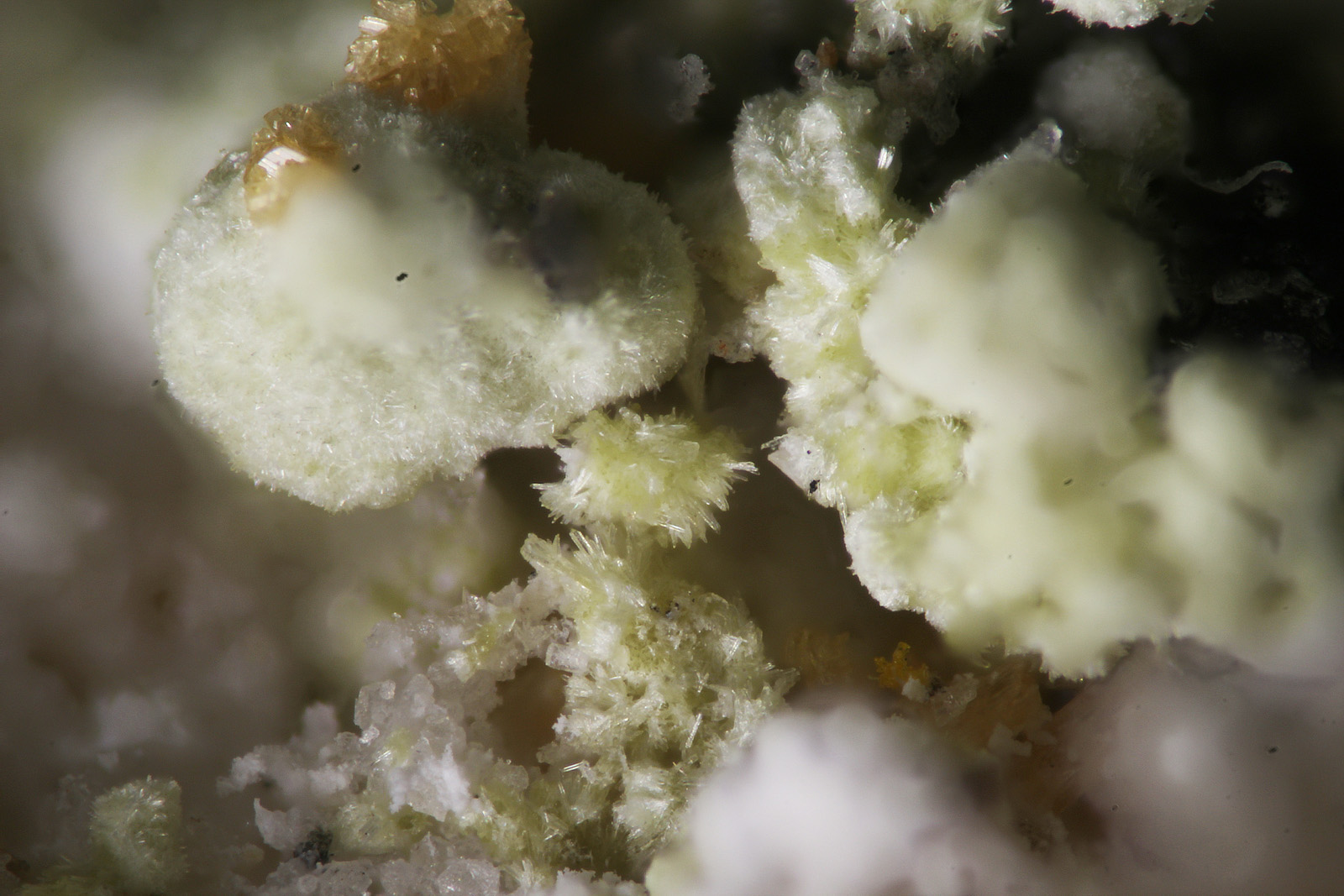 Adranosit-(Fe), Halde der Zeche Alstaden, Duisburg, Bildbreite ca. 1,5mm
