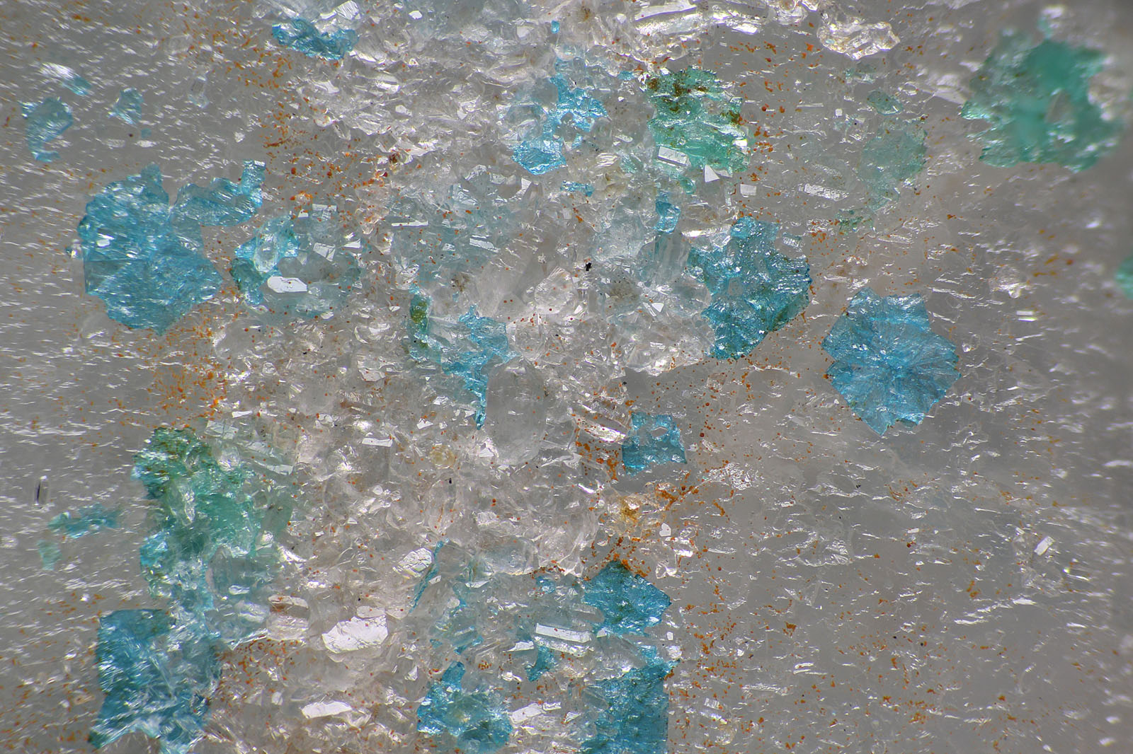 Eigentlich ein Fall für die Tonne, wäre da nicht der Fundort gewesen. Es sind bisher die einzigen Blei-Kupfer-Oxihalogenide die ich aus dem Vorkommen sicher nachweisen kann.