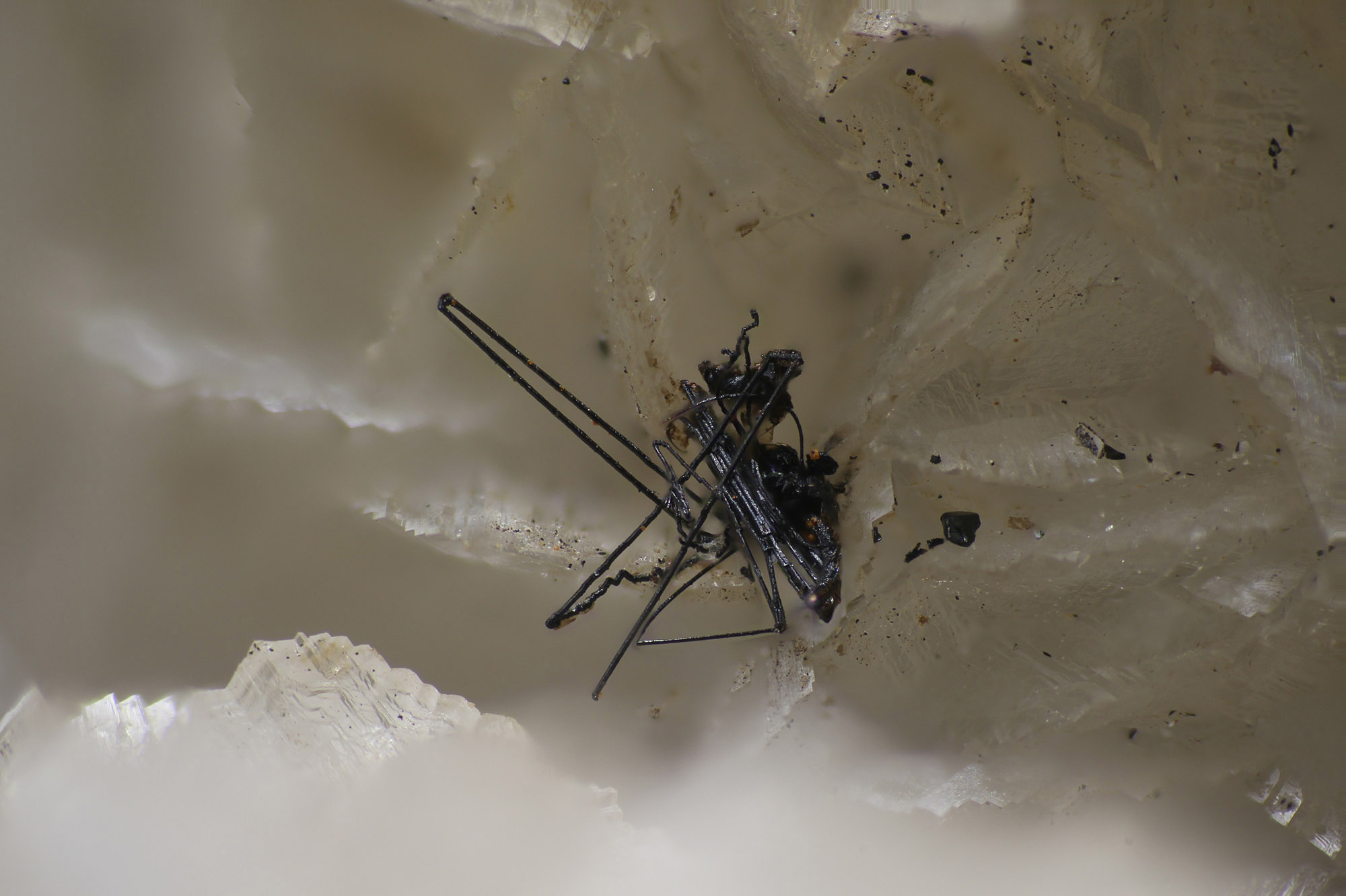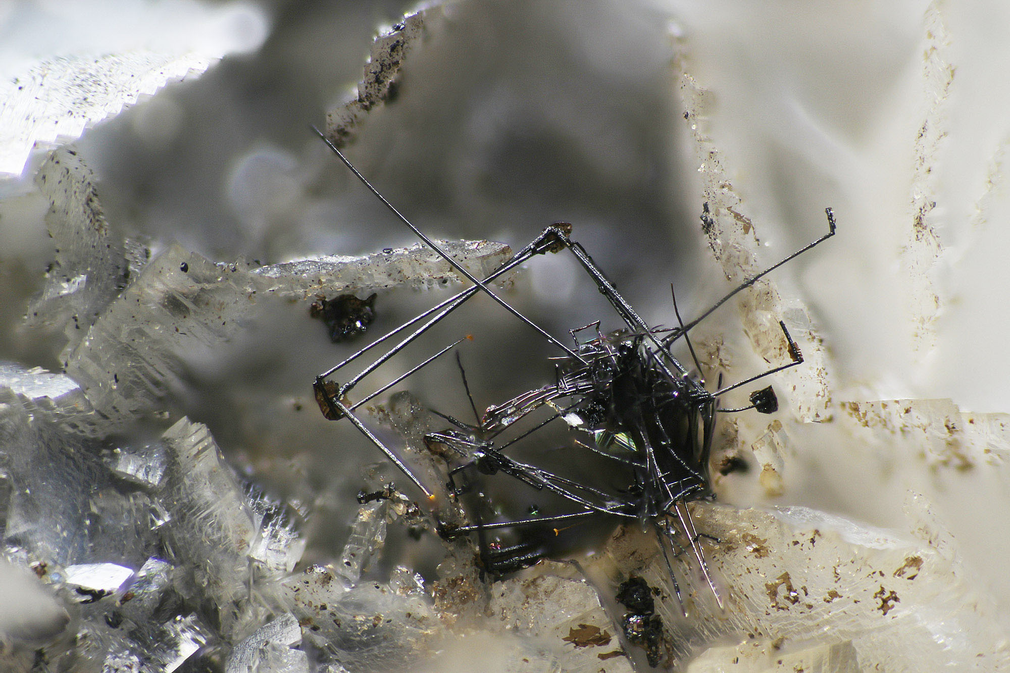 Geradezu auffällig ist, das die nadeligen Pyrit-xx fast immer mit einer braunen Schicht umkrustet sind (vermutlich Limonit). Zudem treten die Kristalle nur in Gegenwart von organischer Substanz (Asphaltit) auf. Es scheint so, als ob die Lösung aus der die Pyrite kristallisierten reich an organischen Substanzen war, denn das Grundgestein riecht stark nach "Benzinen". DAs ist jetzt nicht verwunderlich, denn schon früher wurden immer wieder organische Substanzen in Form von Ölen und Wachsen in Toneisensteinknollen gefunden.