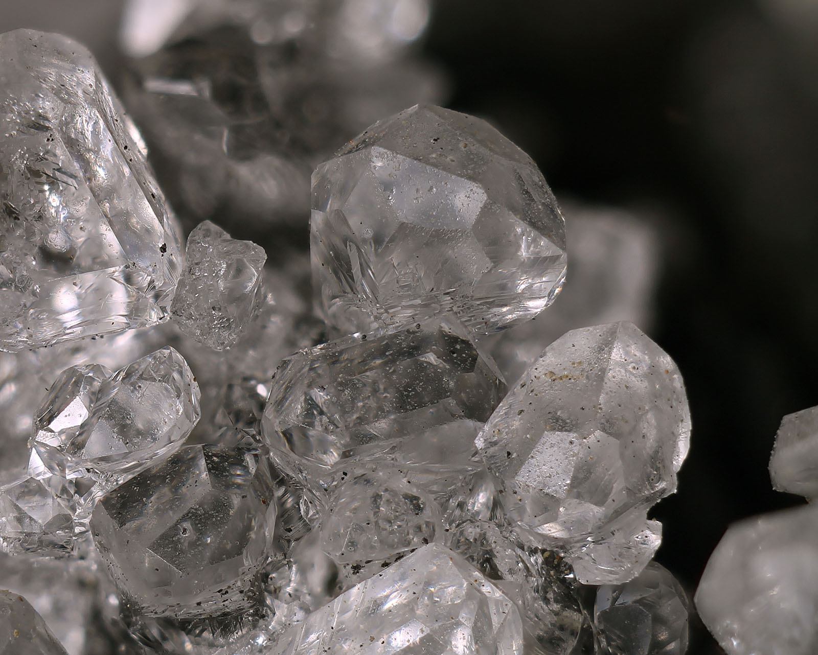 Die sicherlich häufigste Variante waren kompakte wasserklare xx, die zum Teil Kristallgrößen bis 1cm erreichten. Im Gegensatz dazu waren gelb gefärbte xx nicht ganz so häufig, dennoch konnten sie immer wieder geborgen werden.