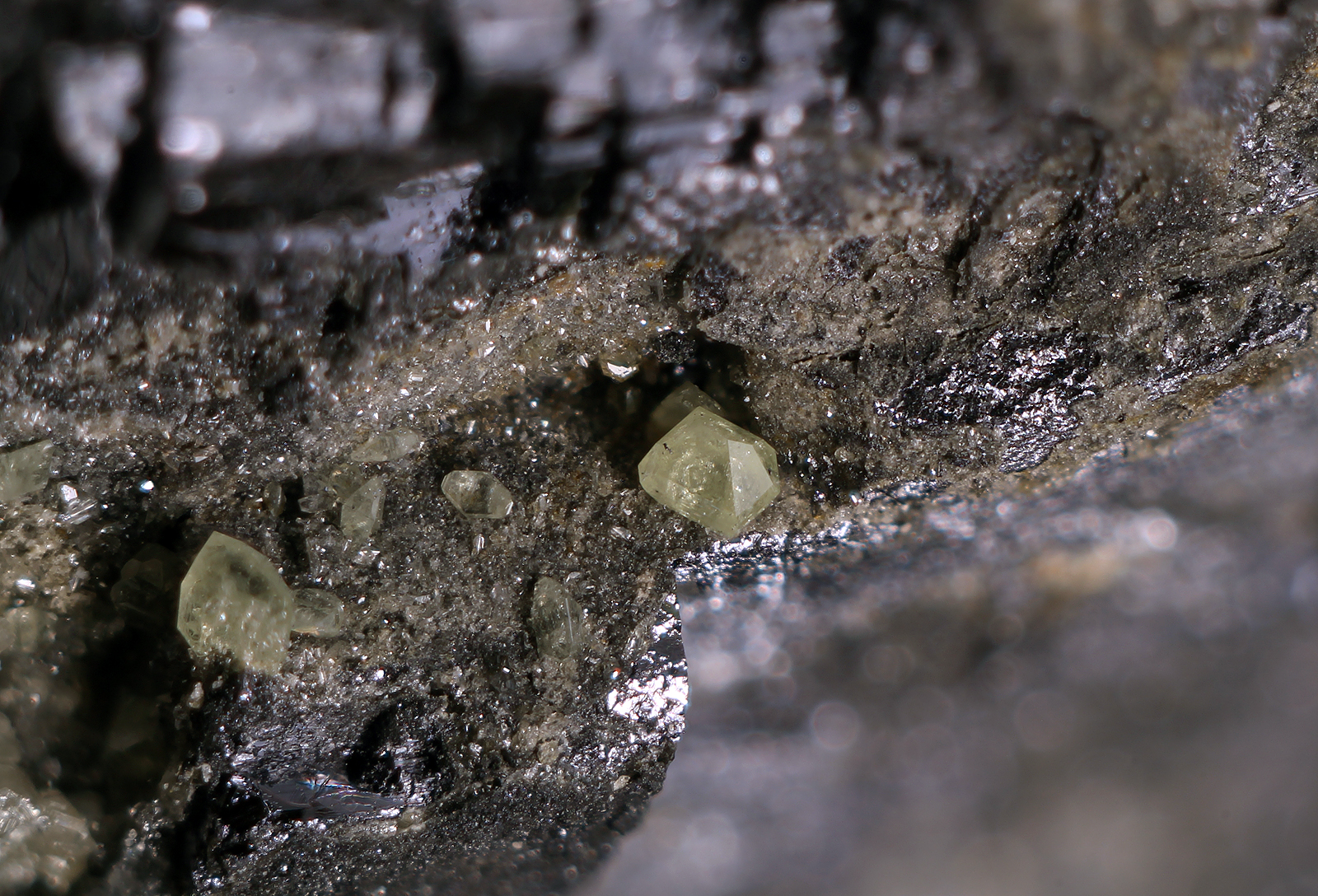 Kleine gelbe Schwefelkriställchen werden immer wieder im Zusammenhang mit oxidiertem Galenit beobachtet.